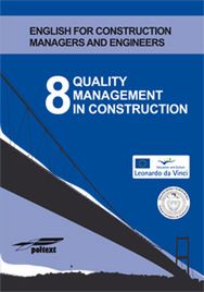 Ostatni, ósmy tom podręczników do nauki fachowego języka angielskiego dla studentów uczelni technicznych, inżynierów, projektantów, konstruktorów i menedżerów budowlanych dotyczy problematyki zarządzania jakością. Obejmuje słownictwo związane z realizacją trzech etapów tego procesu: dążeniem do maksymalizacji wartości firm budowlanych, czyli spełnienia wymagań i satysfakcji klientów, dostawców, udziałowców; usprawnianiem systemu zarządzania technologią, informacją, kwalifikacjami pracowników; doskonaleniem narzędzi i procedur w celu integracji organizacji ze środowiskiem zewnętrznym i zagwarantowania rozwoju kultury organizacyjnej. Seria ENGLISH FOR CONSTRUCTION MANAGERS AND ENGINEERS wychodzi naprzeciw potrzebom szerokiego grona osób zajmujących się zarządzaniem w obszarach budownictwa, infrastruktury i ochrony środowiska, w tym projektami finansowanymi ze środków Unii Europejskiej. Układ treści podręczników jest dostosowany do problemów pojawiających się w całym cyklu procesu inwestycyjnego – od przygotowania założeń projektowych, dokumentacji projektowej, przetargów i umów poprzez realizację projektów, kontrolę jakości, analizę kosztów, na odbiorach i rozliczeniach projektów kończąc. Podręczniki zostały opracowane według najnowocześniejszych metodologii nauczania języków obcych, a ich przyswajanie jest wspomagane poprzez odpowiedni układ ćwiczeń i nagrań. Poszczególne tomy uwzględniają praktyczne zagadnienia występujące podczas współpracy z zagranicznymi inwestorami lub przedsiębiorcami, co jest szczególnie istotne w perspektywie wyzwań, jakie czekają nasz kraj do roku 2012.