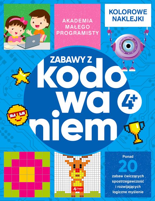 Zeszyt zawiera ponad 20 zabaw ćwiczących spostrzegawczość i rozwijających logiczne myślenie, a jednocześnie wprowadzających szybko i bezboleśnie do nauki programowania komputerowego. Wykonując polecenia i rozwiązując łamigłówki, dziecko obserwuje, analizuje i wnioskuje - rozwija zdolność myślenia przyczynowo-skutkowego. Na końcu publikacji zamieszczono rozwiązania wszystkich zadań, dodano także arkusz naklejek, dzięki którym zabawa stanie się jeszcze fajniejsza.