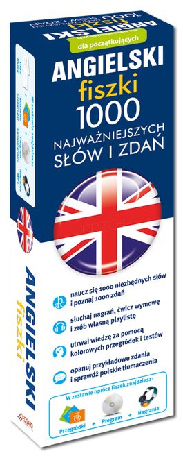 Dzięki nauce z fiszkami: - poznasz 1000 najważniejszych słów i zdań, dzięki którym zaczniesz swobodnie rozmawiać, - utrwalisz słówka i poznasz ich użycie w kontekście – 1000 przykładowych zdań, - szybko i skutecznie opanujesz słownictwo z aż 40 grup tematycznych, - posłuchasz gotowych nagrań i przećwiczysz wymowę, - stworzysz własną playlistę i powtórzysz słówka za lektorem, - utrwalisz wiedzę za pomocą kolorowych przegródek i testów, - będziesz ćwiczył język o każdej porze i w dowolnym miejscu. Angielski fiszki 1000 najważniejszych słów wraz z przykładowymi zdaniami to wyjątkowy zestaw, który tworzą: ponad 1000 ponumerowanych fiszek, płyta CD-ROM z nagraniami i programem oraz praktyczne pudełko z kolorowymi przegródkami. Nauka z kursem pozwala szybko i skutecznie opanować najczęściej używane w języku angielskim słówka. Opanowanie tego unikalnego zestawu umożliwia swobodną komunikację na poziomie podstawowym oraz czytanie ze zrozumieniem większości tekstów w języku angielskim. Przykłady użycia wszystkich słów w zdaniu to gotowe wzorce komunikacyjne. Fiszki podzielono na 40 praktycznych grup tematycznych, aby ułatwić zapamiętanie materiału metodą skojarzeń. Kolorowe przegródki pozwalają zaplanować naukę, a nagrania mp3 ułatwiają opanowanie prawidłowej wymowy. Do zestawu dołączony jest program Aktywny Trening z ćwiczeniami, który umożliwia tworzenie indywidualnych list nagrań, odsłuchiwanie ich na dowolnym odtwarzaczu i głośne powtarzanie za lektorem. Dodatkowo dzięki funkcji karaoke możesz sprawdzić na ekranie wyświetlacza prawidłową pisownię słówek. Rozwiązując testy aktywnie sprawdzisz stopień opanowania materiału z fiszek i skutecznie utrwalisz znajomość słownictwa.