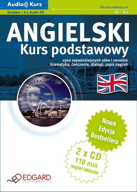 Angielski Kurs podstawowy - Nowa Edycja! - 110 minut nagrań - tylko native speakerzy, - przystępnie objaśniona gramatyka, - ćwiczenia z odpowiedziami, - ilustrowane ciekawostki, - sekcje dla ambitnych, - przejrzyste tabele gramatyczne. Angielski Kurs podstawowy przeznaczony jest dla osób początkujących, oraz wszystkich, którzy chcą szybko i samodzielnie przypomnieć sobie podstawy języka angielskiego. Kurs uczy 1500 słów i zwrotów niezbędnych na co dzień - teraz już samodzielnie zapytasz o drogę, zrobisz zakupy, zarezerwujesz pokój i bez problemu dogadasz się w każdej sytuacji! różnorodne ciekawostki zapoznają cię z obyczajami oraz kulturą Wielkiej Brytanii. W skład kursu wchodzą: książka oraz dwie płyty audio z nagraniami. Książka (104 str.) zawiera zapis nagrań, interesujące ćwiczenia, ciekawostki oraz uczy prawidłowej pisowni. część gramatyczna wyjaśnia najważniejsze zagadnienia, a zamieszczone na końcu książki tabele ułatwiają zapamiętanie materiału. Wysokiej jakości nagrania (110 min.) pozwalają osłuchać się z językiem, poznać jego melodię oraz prawidłowy brytyjski akcent. Co zmieniono w Nowej Edycji? - nowa, atrakcyjna szata graficzna, - bardziej przejrzysty układ książki, - większa ilość słówek i zwrotów, - ciekawostki o obyczajach i kulturze, - rozbudowana część gramatyczna, - dodatkowe ćwiczenia, sekcje dla ambitnych, - większa ilość nagrań, - przejrzyste tabele gramatyczne. Angielski Kurs podstawowy jest polecany do samodzielnej nauki w podróży, w domu, w samochodzie. Ucz się gdziekolwiek jesteś! Opanuj podstawy języka i zacznij wreszcie rozmawiać!