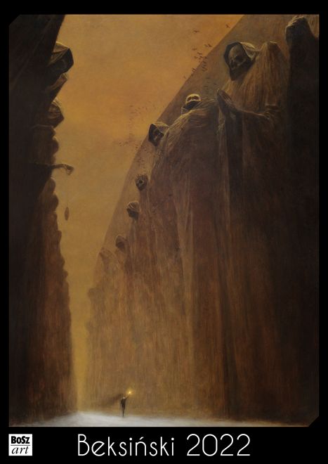 Kalendarz 13-kartkowy na 2022 rok z 12 ilustracjami prac Zdzisława Beksińskiego w formacie A3 (420x297 mm) wydrukowany na kredowym papierze o gramaturze 170g.