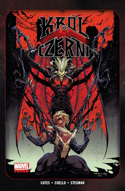 Mroczny bóg Knull dotarł na Ziemię, ale… nie jest sam. Towarzyszy mu horda smoczych symbiontów! Venom dobrze wie, do czego są zdolne te stwory, i choć ma wsparcie najpotężniejszych ziemskich bohaterów, starcie z wszechmocnym bogiem pustki i jego straszliwymi sługami może go kosztować więcej, niż jest gotów zapłacić. Czy mimo to uda mu się obalić króla w czerni i ocalić swojego syna? Przedstawiamy wielki finał głośnej, utrzymanej w klimacie horroru i thrillera psychologicznego opowieści o Venomie autorstwa Donny’ego Catesa, scenarzysty znanego z serii „Doktor Strange” czy „Thanos”. Rysunki stworzyli między innymi Iban Coello („Deadpool & the Mercs for Money”) i Ryan Stegman („The Superior Spider-Man”, „Wolverine: Trzy miesiące do śmierci”). Album zawiera zeszyty #1–5 miniserii „King in Black” oraz #31–35 serii „Venom”.