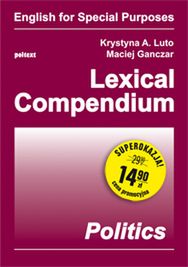 Lexical Compendium. Politics to już trzeci tom z serii repetytoriów leksykalnych ENGLISH FOR SPECIAL PURPOSES poświęcony następującym zagadnieniom: European Union; International organisations; European geopolitics; Types of political system; Political system of the United Kingdom and of the United States of America; Administrative structure; Political parties & Elections; Diplomacy. Publikacja zawiera zbiór ćwiczeń i zadań leksykalnych dla początkujących i średnio zaawansowanych. Przeznaczone jest dla tych, którzy pragną usystematyzować, utrwalić i powtórzyć słownictwo angielskie z zakresu polityki. Powstało głównie z myślą o studentach nauk politycznych, stosunków międzynarodowych, dziennikarstwa, europeistyki.