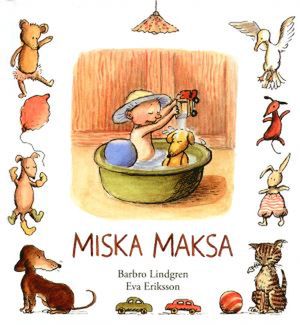 Maks ma miskę. Pełną wody. Jak przyjemnie się w niej kąpać! Razem z Maksem kąpie się piłka, autko, miś, ciastko, no i... o nie, piesek zdecydowanie nie lubi kąpieli! Każda książeczka o Maksie to pełne dramatyzmu zdarzenie z życia małego chłopca. Towarzyszy mu piesek, który raz pomaga Maksowi wyjść z opresji, raz mu się psoci, a kiedy indziej broi razem z nim. W trudnych momentach pojawia się mama, która wie kiedy utulić, a kiedy skarcić. Maks ma swój charakterek - jak każde dziecko potrafi się złościć i dochodzić swoich racji.