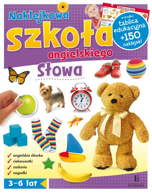Naklejkowa szkoła angielskiego to seria, która skutecznie stymuluje rozwój młodego umysłu, przy okazji oswajając dziecko z językiem angielskim. Zadania bawią i uczą, pomagając ćwiczyć logiczne myślenie i spostrzegawczość. Angielskie słowa utrwalają się w pamięci malucha, zwiększając jego szanse na opanowanie tego języka w przyszłości. Dzięki kolorowej tablicy edukacyjnej dziecko utrwala wiedzę, świetnie się przy tym bawiąc. Znakomita pomoc w kształtowaniu u dziecka wszystkich potrzebnych mu potem w szkole umiejętności