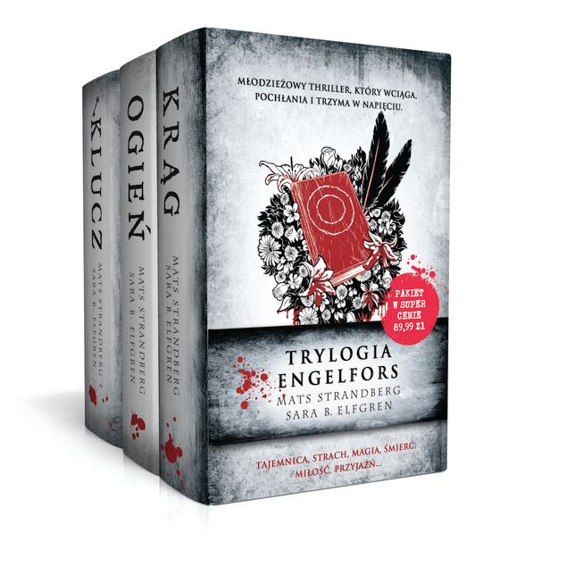 Bestsellerowy thriller o Wybrańcach z mrocznego miasteczka Engelfors. Tajemnica, strach, magia, śmierć, miłość, przyjaźń... Wielki powrót skandynawskiej literatury dla młodzieży! Mats Strindberg pisarz, niezależny dziennikarz i popularny felietonista gazety „Aftonbladet”. Sara Bergmark Elfgren pisarka, blogerka i autorka scenariuszy – tworzy zarówno dla producentów filmowych, jak i telewizyjnych. W skład pakietu wchodzą: Krąg Na pozór zwyczajne miasteczko, w którym dzieją się dziwne rzeczy. Sześć dziewcząt właśnie rozpoczęło naukę w liceum. Nic ich ze sobą nie łączy, każda z nich jest inna. Pewnej nocy, gdy na niebie pojawia się czerwony księżyc, dziewczyny spotykają się w parku. Nie wiedzą jak, ani dlaczego się tu znalazły. Odkrywają, że drzemią w nich tajemne moce, a ich życiu zagraża niebezpieczeństwo... Aby przeżyć, muszą działać wspólnie, stworzyć magiczny krąg. Od tej chwili szkoła staje się dla nich sprawą życia i śmierci… Ogień Wybrańcy rozpoczynają drugi rok nauki w gimnazjum. Wakacje upłynęły im na pełnym napięcia oczekiwaniu na kolejny ruch demonów. Lecz teraz ku ich zdziwieniu zagrożenie nadchodzi z najmniej spodziewanej strony. Stopniowo staje się oczywiste, że w Engelfors dzieje się coś bardzo złego. Przeszłość splata się z teraźniejszością. Żywi spotykają umarłych. Krąg Wybrańców coraz bardziej się zacieśnia… Klucz Minął niespełna miesiąc od tragedii na sali gimnastycznej w liceum w Engelsfors, lecz Wybrańcy nie mają czasu, żeby dojść do siebie. Niebawem ich świat znowu stanie na głowie. Pytania znajdą odpowiedzi, tajemnice zostaną wyjawione, a lojalność będzie wystawiona na ciężką próbę. Czasu jest coraz mniej, a Wybrańcy mogą być pewni tylko jednego – że wszystko się zmieni. Klucz to ostatnia część trylogii o miasteczku Engelsfors. Poprzednie dwa tomy, Krąg i Ogień odniosły ogromny sukces zarówno wśród krytyków, jak i czytelników. Krąg został w 2011 r. nominowany do prestiżowej nagrody literackiej Augustpriset w kategorii „literatura dla dzieci i młodzieży”.