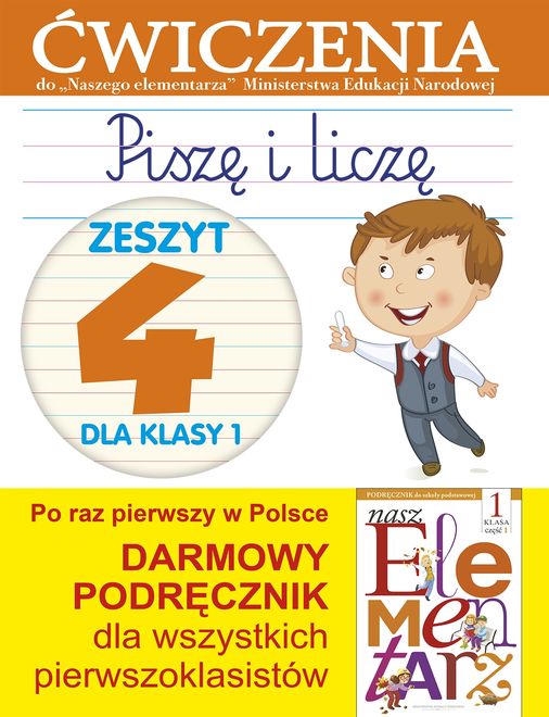Pierwsze tygodnie i miesiące szkoły potrafią wywrzeć istotny wpływ na przyszły stosunek dziecka do nauki. Dlatego warto przygotować się na ten okres życia, zapoznać z tym, co przyszły pierwszoklasista ma umieć i znać. Zeszyty ćwiczeń są dokładnie dostosowane do najnowszego darmowego podręcznika MEN dla klasy I. 1/ w tej samej kolejności realizują tematy 2/ realizują zadania tylko zasygnalizowane w podręczniku, a zwyczajowo związane z zeszytami ćwiczeń (czyli rozwijające umiejętności manualne, utrwalające wiedzę i sprawdzające jej opanowanie) 3/ realizują podstawę programową MEN dla kl. 1 4/ działają dokładnie tak, jak zeszyty ćwiczeń, które realizowane będą w szkole, ale będą stanowić uzupełnienie edukacji, a nie jej powtarzanie. 5/ zagwarantują więc pomoc w lepszym opanowaniu materiału uczniom mającym problemy lub dodatkowe zadania dzieciom zdolnym, wymagającym większej liczby zadań. Seria zawiera 4 zeszyty: Jestem uczniem – zeszyt 1 Już się uczę – zeszyt 2 Poznaję litery i liczby – zeszyt 3 Piszę i liczę – zeszyt 4