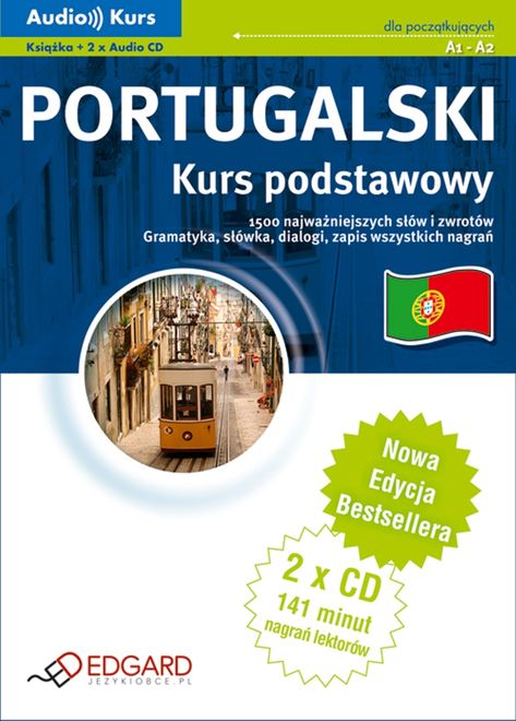 Portugalski Kurs podstawowy: - 141 minut nagrań - tylko profesjonalni lektorzy, - dialogi i praktyczne wyrażenia z tłumaczeniami, - przystępnie objaśniona gramatyka, - ćwiczenia z odpowiedziami, - ciekawostki na temat języka i kultury Portugalii, - dodatkowe słówka i przydatne informacje. Portugalski Kurs podstawowy przeznaczony jest dla osób początkujących oraz wszystkich, którzy chcą szybko i samodzielnie przypomnieć sobie podstawy języka portugalskiego. Kurs uczy 1500 słów i zwrotów niezbędnych na co dzień – teraz już samodzielnie zapytasz o drogę, zrobisz zakupy, zarezerwujesz pokój i bez problemu poradzisz sobie w każdej codziennej sytuacji! Zamieszczone w książce ciekawostki zapoznają Cię z obyczajami oraz kulturą Portugalii. W skład kursu wchodzą: książka i dwie płyty audio z nagraniami. Książka (120 stron) zawiera zapis nagrań wraz z tłumaczeniami, interesujące ćwiczenia, ciekawostki oraz uczy też prawidłowej pisowni. Część gramatyczna wyjaśnia najważniejsze zagadnienia, a liczne przykłady pozwalają na lepsze zrozumienie i ugruntowanie zdobytej wiedzy. Książka zawiera ciekawostki na temat życia we współczesnej Portugalii. Opisane są m.in. azulejos, wino Porto, muzyka fado i słynni Portugalczycy. Wysokiej jakości nagrania (141 min) pozwalają osłuchać się z językiem, poznać jego melodię oraz prawidłową wymowę. Wszystkie słówka, zwroty oraz dialogi wraz z tłumaczeniami zostały udźwiękowione przez profesjonalnych lektorów. Uczysz się bez konieczności zaglądania do książki! Co zmieniono w Nowej Edycji? nowa, atrakcyjna szata graficzna, rozbudowany podręcznik, bardziej przejrzysty układ książki, ciekawostki o obyczajach i kulturze, obszerna część gramatyczna, dodatkowe ćwiczenia, poprawione wszystkie błędy. Portugalski Kurs podstawowy jest polecany do samodzielnej nauki w podróży, w domu, w samochodzie. Ucz się, gdziekolwiek jesteś! Opanuj podstawy języka i zacznij swobodnie rozmawiać!