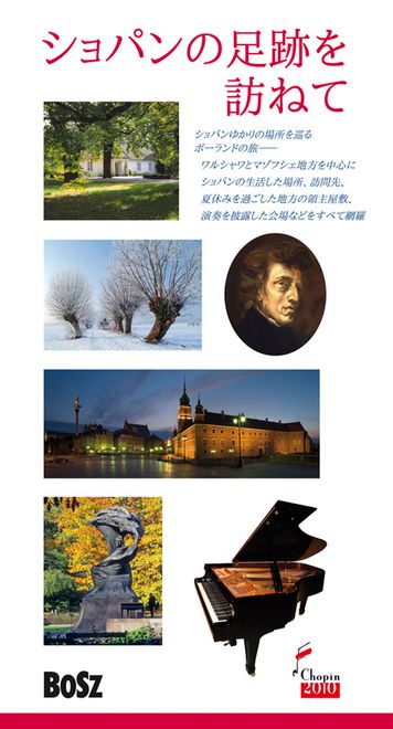 Przewodnik prowadzi czytelnika śladami Fryderyka Chopina po Polsce – od Warszawy i Żelazowej Woli, przez dwory Mazowsza i Ziemi Chełmińskiej, na Śląsk, do Wielkopolski, aż po Kraków. Interesujące syntetyczne opisy miejsc związanych z genialnym kompozytorem, bogaty materiał ilustracyjny, mapki i plany. Tłumaczenie na język japoński: Kei Ogura.