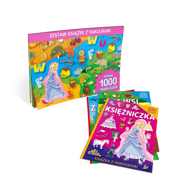 Super zestawy dla małych i dużych miłośników zabaw z naklejkami. W teczce dzieci znajdą trzy książki z barwnymi planszami tematycznymi, które należy uzupełnić kolorowymi naklejkami. Na każdej planszy można przykleić nawet kilkanaście obrazków – w sumie ponad 1000 naklejek! Godziny dobrej zabawy gwarantowane!