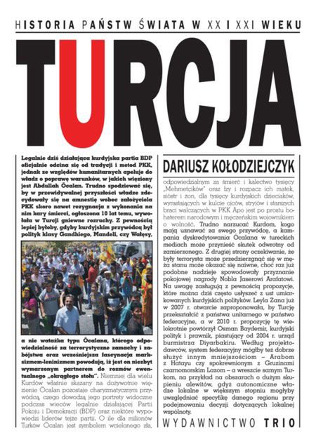 Kompendium wiedzy o zjawiskach, procesach, wydarzeniach politycznych, gospodarczych i kulturalnych dziejących się na terenie współczesnej Turcji. Autor przedstawia międzynarodową rolę Turcji w kontekście niedawnych wojen w Iraku i Gruzji oraz bezpieczeństwa energetycznego Unii Europejskiej, kwestię cypryjską, kwestię kurdyjską, wciąż niepewne, przyjęcie Turcji do UE, obecny kryzys gospodarczy i jego wpływ na losy Republiki Tureckiej.