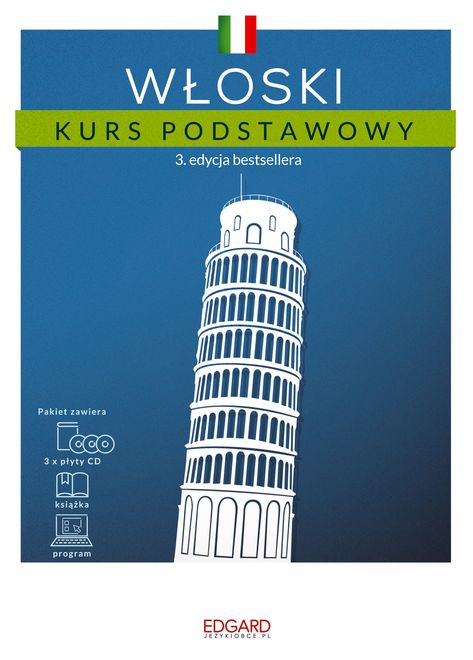 Zacznij mówić i czytać po włosku! W najnowszym wydaniu unikalnego kursu dla początkujących znajdziesz wszystko, czego potrzebujesz do samodzielnej i skutecznej nauki: obszerny podręcznik w nowoczesnej szacie graficznej, nagrania native speakerów z tłumaczeniami oraz wciągające ćwiczenia w programie komputerowym. Książka (208 str.): - 39 ciekawych lekcji – poznaj słownictwo i podstawy gramatyki - 1700 słów, wyrażeń i zdań przydatnych na co dzień – zrób zakupy, kup bilet, zapytaj o drogę - teksty, dialogi, ciekawostki oraz słowniczek włosko-polski - ćwiczenia utrwalające z kluczem odpowiedzi i rozdziały podsumowujące – ucz się aktywnie i trwale zapamiętuj Wysokiej jakości nagrania: - 175 min nagrań native speakerów – poznaj włoską wymowę - nagrania z tłumaczeniami – powtarzaj za lektorem - słuchaj i ucz się w drodze do pracy, na siłowni, w samochodzie Program komputerowy: - ćwiczenia interaktywne – utrwalaj i powtarzaj materiał - gry językowe – nawet nie zauważysz, jak zapamiętasz słówka - testy podsumowujące – dowiedz się, ile już umiesz - wygodne generowanie playlist nagrań mp3 – twórz własne playlisty i zapamiętuj szybciej