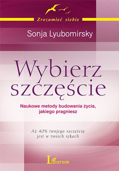 Budowanie szczęścia w życiu: praca, którą warto wykonać jak żadną inną — Co jest w życiu najważniejsze? — Szczęście! (Takiej odpowiedzi udziela ponad 50% ankietowanych, bez względu na kraj, płeć i wiek) Haczyk polega na tym, że upatrujemy szczęścia nie tam, gdzie ono naprawdę jest. Jak sądzisz, czy któraś z tych trzech rzeczy mogłaby cię uszczęśliwić: wzrost dochodów, awans społeczny albo lepszy wygląd? Jeśli uważasz, że tak, to jesteś w błędzie – padłeś ofiarą mitów o szczęściu zakorzenionych we współczesnym społeczeństwie. Te mity – błędne przekonania o tym, skąd bierze się szczęście – odcinają nam drogę do radości i życiowego spełnienia. Sonja Lyubomirsky rozprawia się z tymi błędnymi przekonaniami: sięga po wyniki wszystkich najważniejszych badań nad szczęściem, jakie przeprowadzono. Pokazuje, jak świadomie wejść na drogę budowania szczęścia, zmienić sposób myślenia, wypracować w sobie pożyteczne nawyki i zacząć znajdować czas na to, co naprawdę uszczęśliwia. Ta książka to trening budowania szczęścia w życiu. Znajdziesz w niej: test psychologiczny: jaki jest twój naturalny poziom odczuwanego szczęścia (albo nieszczęścia), ćwiczenia, które dają natychmiastową poprawę samopoczucia, działania budujące trwałe szczęście: od ćwiczenia optymizmu do medytowania, psychologiczne studia przypadku: historie ludzi, którzy z nieszczęśliwych stali się szczęśliwi, dodatek specjalny: porady dla osób, które cierpią na (albo podejrzewają siebie o) depresję. Ta książka zawiera także test postępów w budowaniu szczęścia. Kiedy już wprowadzisz w życie program budowania szczęścia dr Sonji Lyubomirsky, regularnie powtarzaj ten test i mierz swoje postępy!Wybierz szczęście to ogromny wkład w rozwój psychologii pozytywnej. To dar dla wszystkich tych, którzy nie czują się szczęśliwi i chcą budować swoje szczęście własnymi siłami. Sonja Lyubomirsky proponuje pionierski plan budowania szczęścia w codziennym życiu. To plan łatwy do wprowadzenia w życie, a jego efekty są natychmiastowe i długotrwałe. Wybierz szczęście przybliża nas do życia, jakie sobie wymarzyliśmy. To dwanaście działań budujących szczęście w życiu. To nowy sposób rozumienia naszego wewnętrznego potencjału radości i szczęścia. Zacznij od krótkiego testu diagnozującego, który pomoże ci ocenić, jak wysoka jest twoja genetycznie „zaprogramowana norma szczęścia”. Lyubomirsky wyjaśnia, że ta norma determinuje 50 procent naszego szczęścia, a różnice uwarunkowań i sytuacji życiowej odpowiadają jedynie za 10 procent szczęścia. To oznacza, że aż 40 procent twojego potencjału budowania szczęścia jest w twoich rękach. OPINIEKsiążka Sonji Lyubomirski jest zarówno interesująca, jak i pożyteczna. Interesująca, bo zdaje sprawę z bardzo współczesnych i rzetelnych badań nad wyznacznikami szczęścia, a czyni to w sposób przejrzysty i zajmujący. Pożyteczna, gdyż omawia skuteczność 12 różnych sposóbów na podwyższenie poczucia szczęścia – każdy może więc wybrać sobie takie sposoby, jakie są najlepiej dostosowane do jego upodobań i możliwości.- prof. dr Bogdan Wojciszke, Instytut Psychologii Polskiej Akademii NaukBudowanie szczęścia to twoje osobiste wyzwanie! To, jak bardzo będziesz spełniony w życiu, aż w 40% zależy od twoich działań. Dzięki książce sam wybierzesz najlepsze dla siebie sposoby postępowania, a ich regularne stosowanie zbuduje twoje szczęście. Jest to metoda oparta na 8-letnich badaniach naukowych w 16 krajach świata. To daje pewność, że podjęty przez ciebie wysiłek zadziała!- Marta Godzisz-Gnoza „Godzia” – zawodowo: doradca osobistego rozwoju, a społecznie: prezes zarządu Fundacji „Przygoda z Edukacją”; laureatka nagrody Johnnie Walker Keep Walking Award