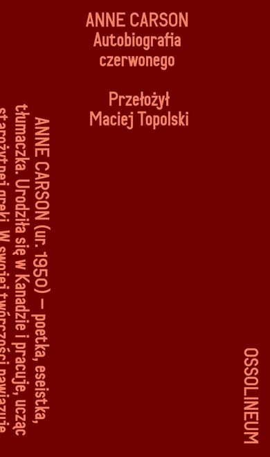 Autobiografia czerwonego jest powieścią-poematem, rozszczelniającą ramy gatunkowe i wyrastającą z praktyki przekładu literackiego, napisaną po Homerze i Stezychorze, po Emily Dickinson i Gertrude Stein – dowcipną, inteligentną, niepowtarzalną.