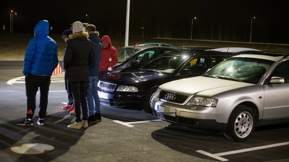 Z piskiem opon na parking zajeżdża beemka. Wysiada z niej dwóch gości w wieku mocno licealnym. – Jak nawracaliśmy przy Kiepury, to wziął normalnie za...ł bokiem. Ale się jaram, k...a. Normalnie bokiem polecieliśmy!